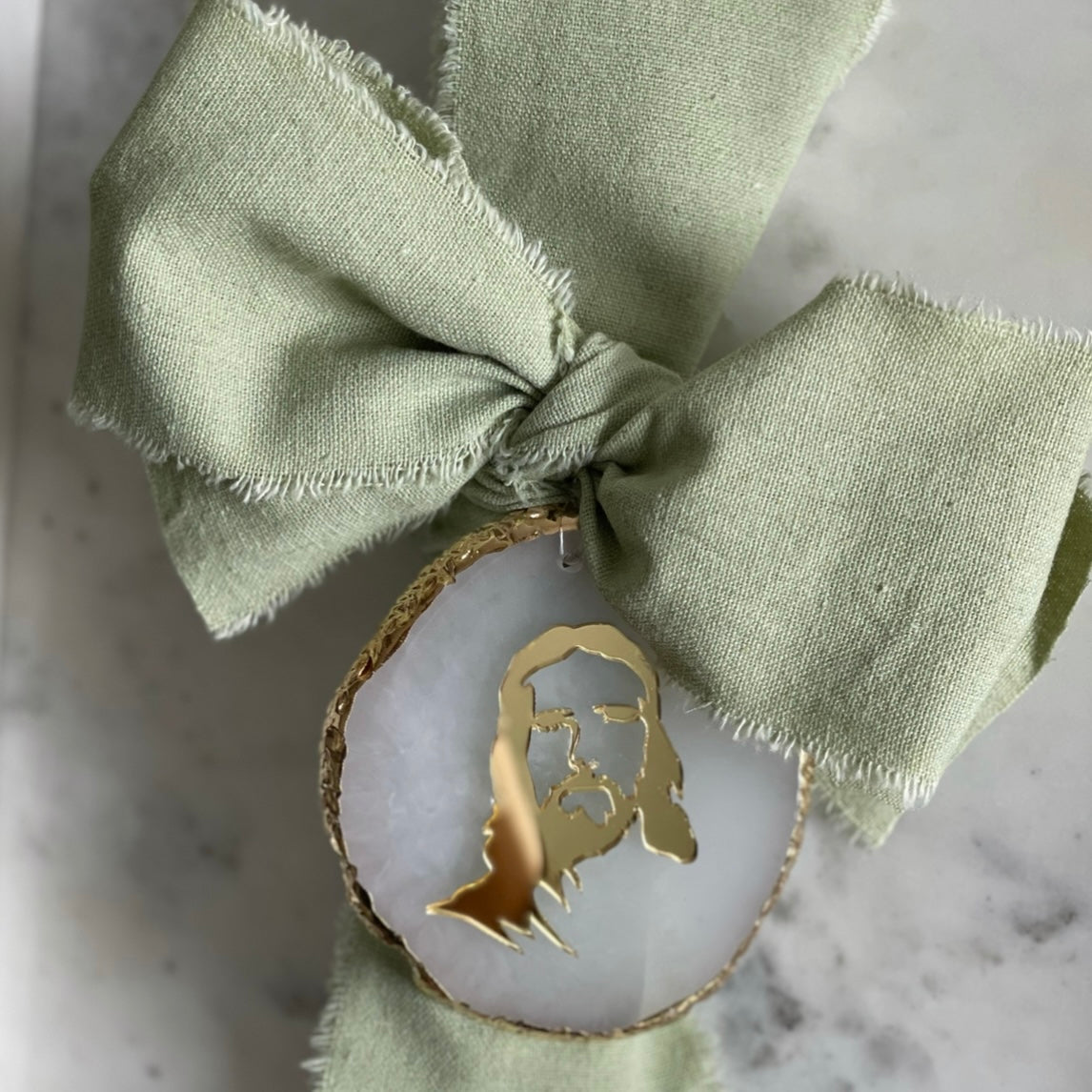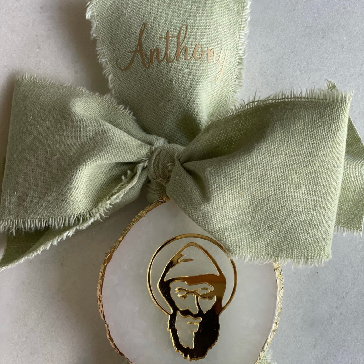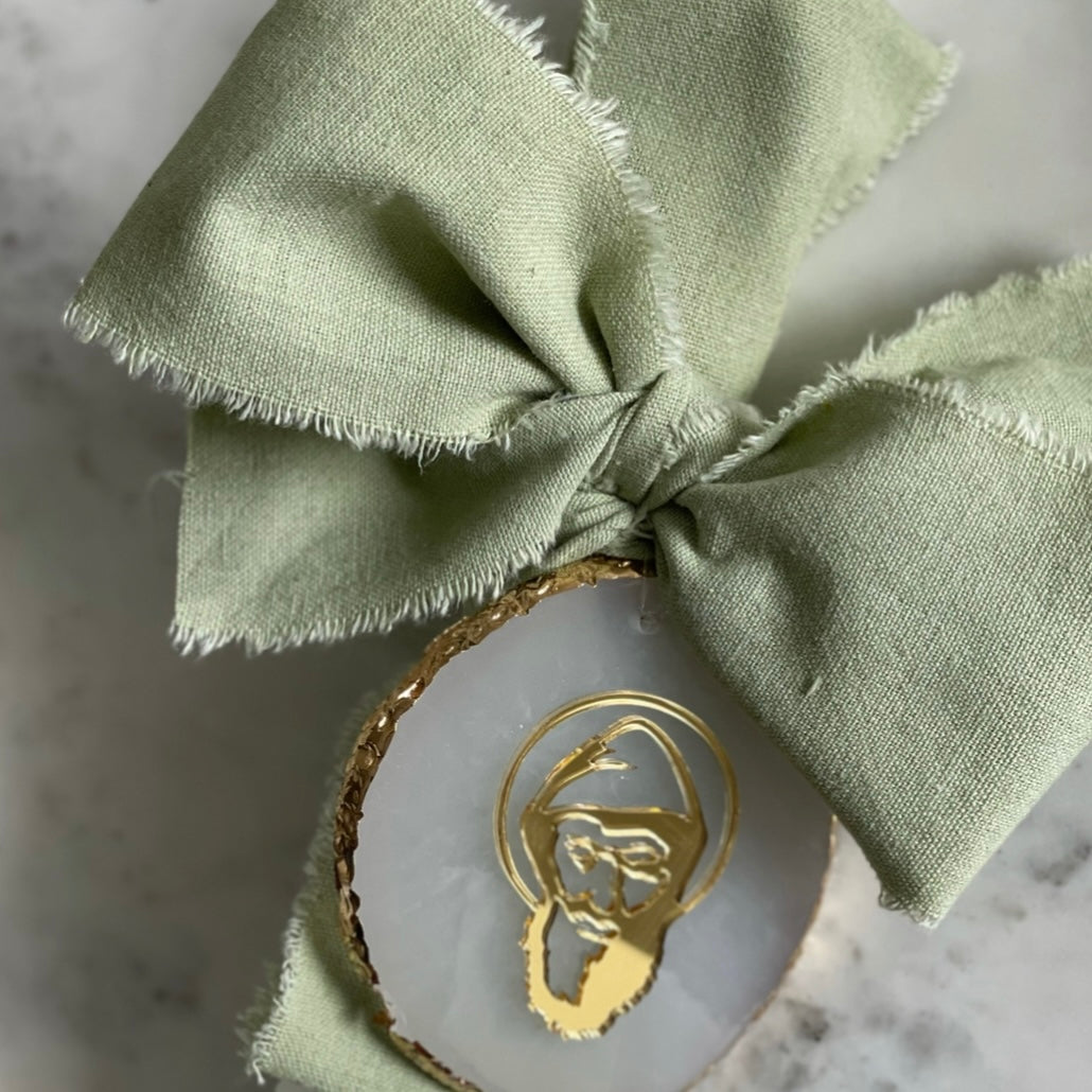 Light the way for Our King this Palm Sunday with this beautiful keepsake candle. A sage green candle wrapped with cotton ribbon.
